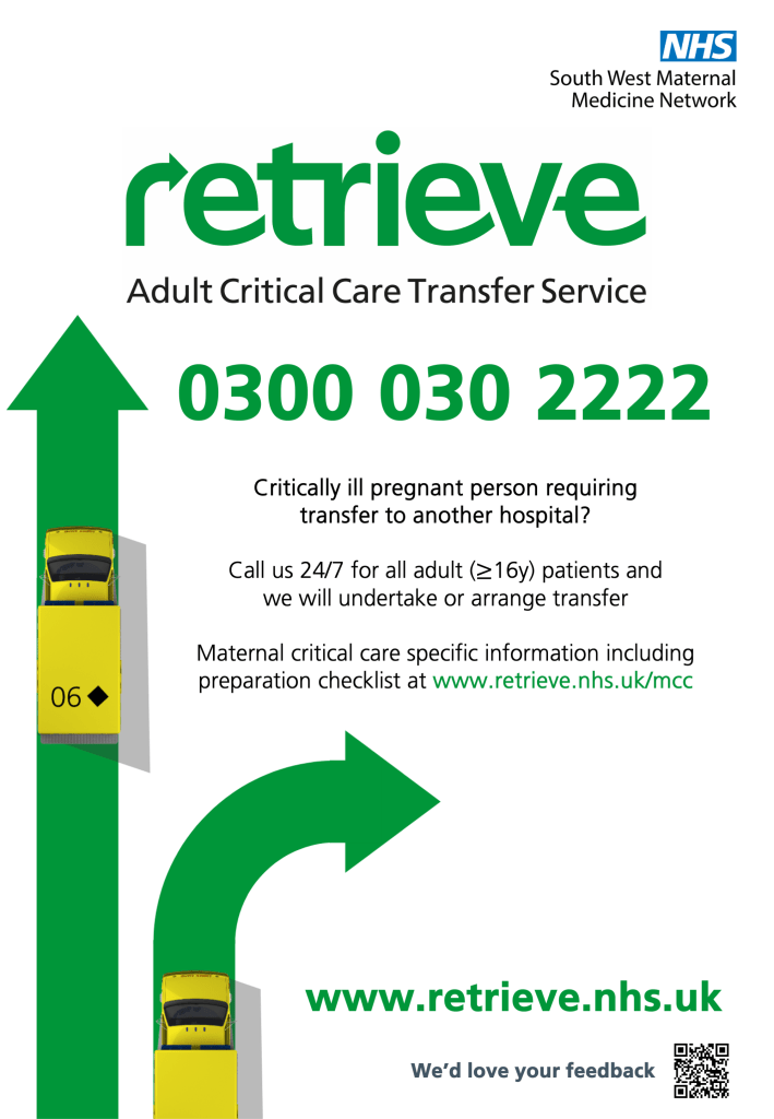 Retrieve and the South West Maternal Medicine Network have undertaken work focussed on the transfer of critically ill pregnant women in our region.